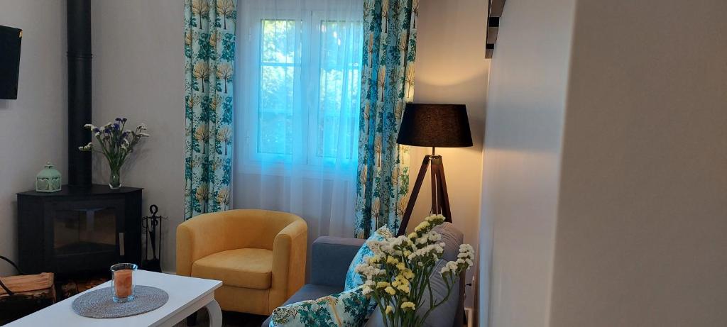 Esta casa de férias providencia uma lareira. Esta casa de férias climatizada inclui uma entrada privada, uma sala de estar, um quarto separado e uma...